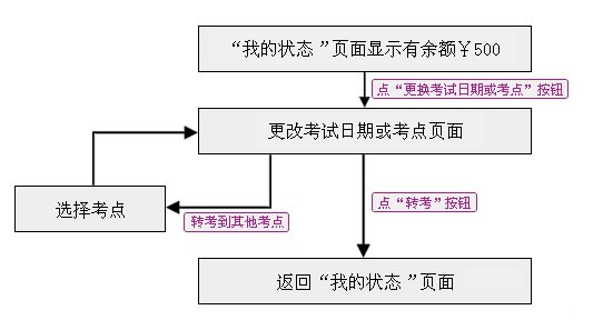 :当你成功完成IELTS考试报名程序之后,在报名截止日期之前,你仍然可以在网上变更你的考试日期和/或考点,这需要你额外支付500元人民币。当你选择考位时,你会看到每场考试的报名、转考和退考的截止日期。请以该网页公布的截止日期为准。